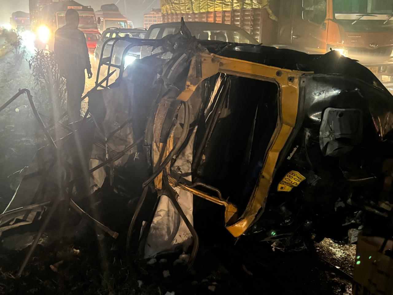 जालंधर (सुनील ) : जालंधर में देर शाम भयानक सड़क हादसा होने की सूचना है। बताया जा रहा है कि थाना मकसूदां के अधीन आते गांव रायपुर अड्डा के समीप हुए सड़क हादसे में 2 लोगों की मौत जबकि 5 लोग गंभीर रूप से जख्मी हुए हैं। जानकारी अनुसार तेज रफ्तार इनोवा कार ने आटो रिक्शा को टक्कर मार दी, जिसके बाद आटो रिक्शा अनियंत्रित होकर ट्रक से जा टकराया। हादसा इतना भयानक था कि 2 लोगों की मौके पर मौत हो गई, जबकि 5 अन्य घायलों को अस्पताल पहुंचाया गया है। मृतक दोनों स्टूडैंट बताए जा रहे हैं, जबकि घायलों में भी 4 स्टूडैंट व एक ड्राइवर शामिल हैं। मरने वालों की आयु 19-20 साल बताई जा रही है और 2 जिन स्टूडैंट की हालत गंभीर बनी हुई है, वे भी 19-20 साल के ही हैं। ये सभी अंबाला के रहने वाले हैं, और यहां कालेज में पढ़ाई करते थे।