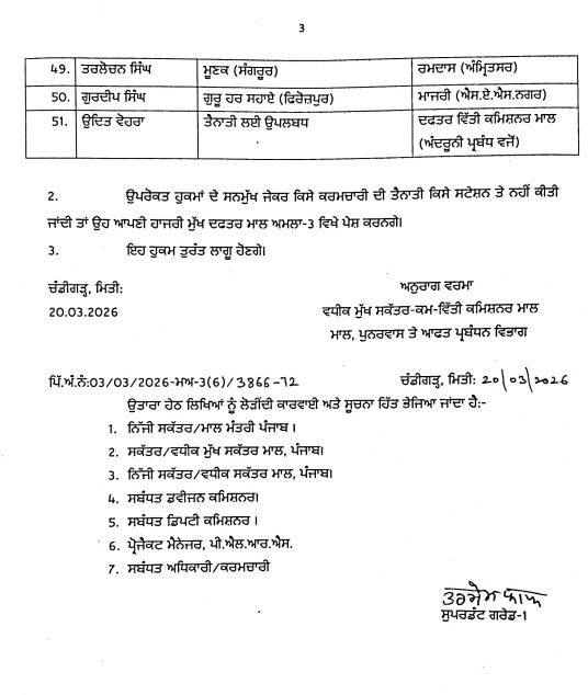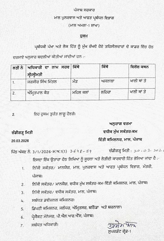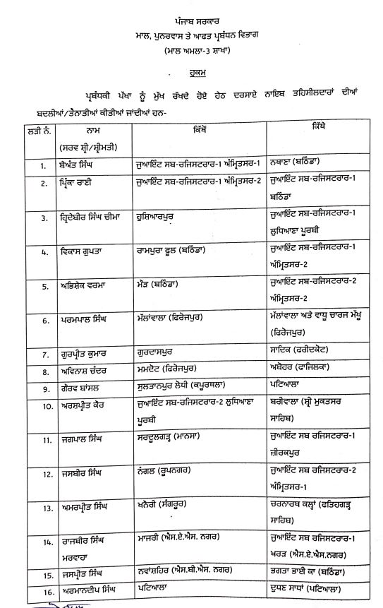 Punjab में बड़े स्तर पर तहसीलदारों के तबादले, जानें किसकी कहां की तैनाती