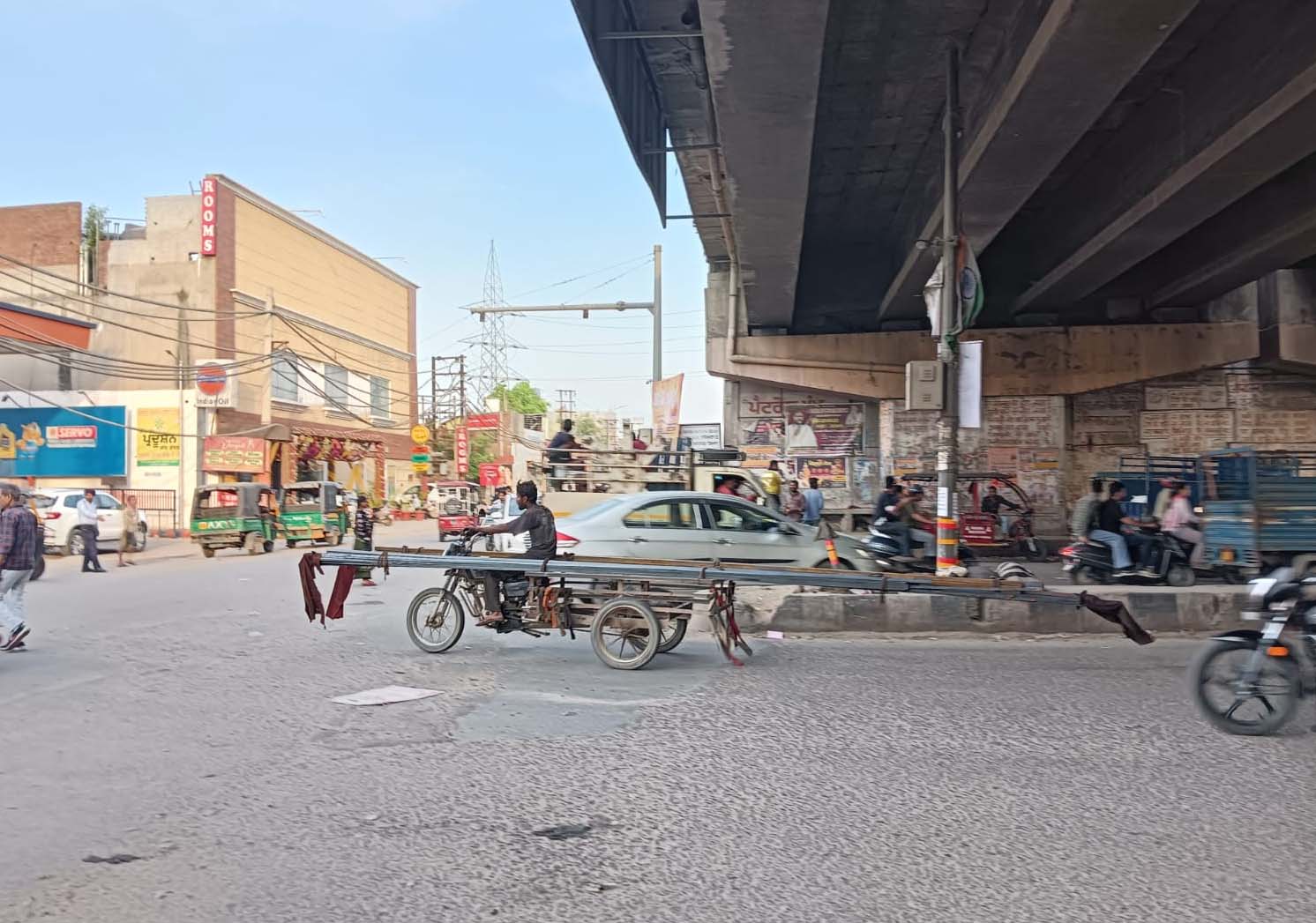 ताज़ा सामने आई तस्वीरों में साफ देखा जा सकता है कि एक जुगाड़ू वाहन पर लंबे-लंबे लोहे के सरिए बिना किसी सुरक्षा के लादकर ले जाए जा रहे हैं। न वाहन पर कोई रेड फ्लैग, न रिफ्लेक्टर, न ही संतुलन का ध्यान—ऐसे में यह किसी भी वक्त किसी बड़े हादसे को न्योता दे सकता है।